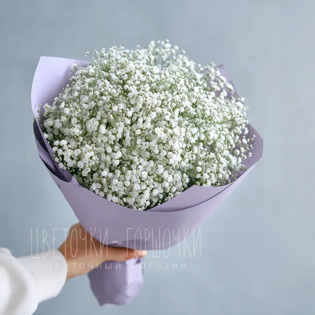 Этот букет будто соткан из невесомых облаков. Идеален для создания романтичного образа, подчёркивает нежность момента. Универсальный и эстетичный подарок на любой случай.