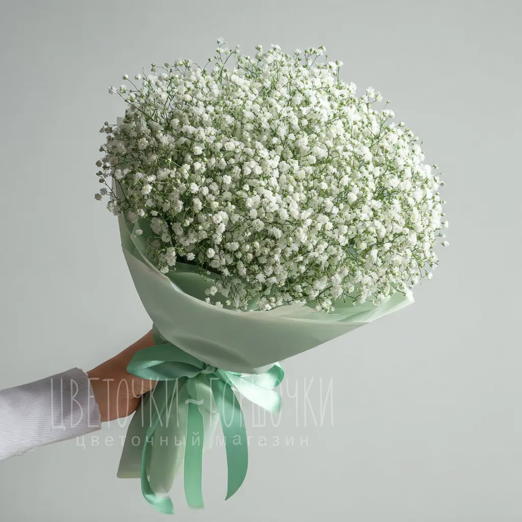 ГлавнаяКаталогБукетыМонобукет из гипсофилы «Молочная вуаль»