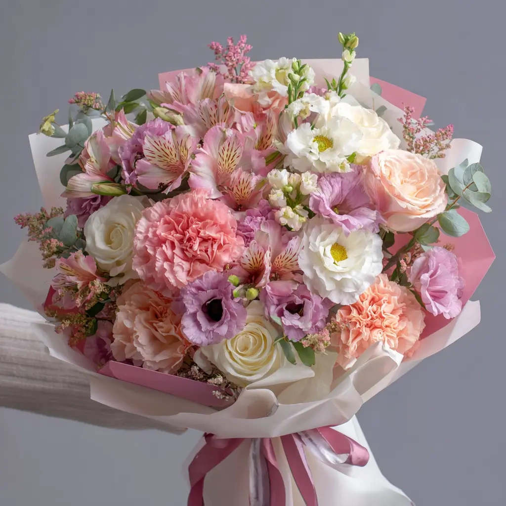 Разноцветные альстромерии в изящной упаковке символизируют богатство эмоций. Такой букет подойдёт для подарка в момент радости, признания или поддержки. Гармония форм и оттенков.