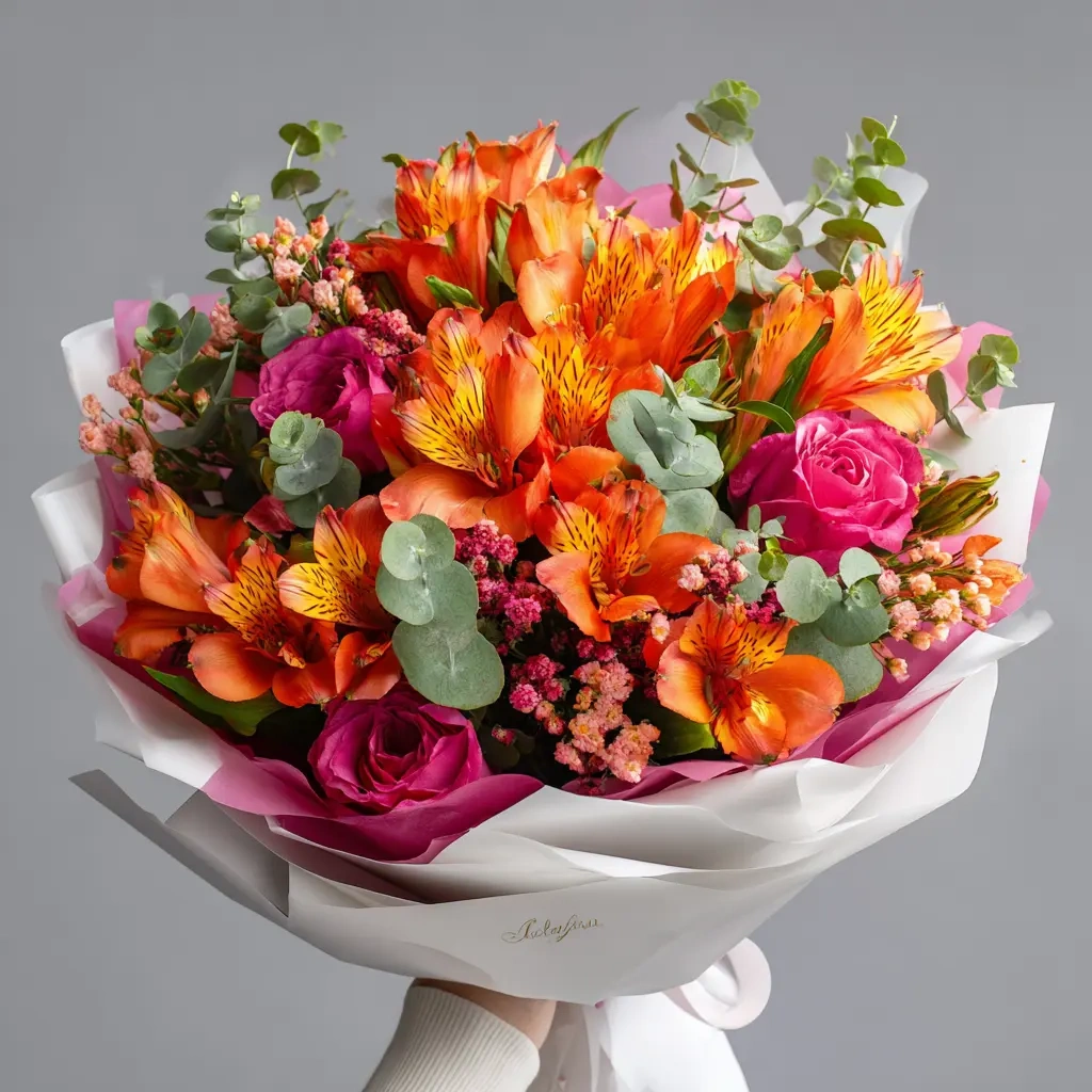 Энергичный букет с контрастными оттенками — для людей с активной жизненной позицией. Альстромерии создают праздничное настроение и передают импульс радости. Подходит для коллег, друзей, преподавателей.