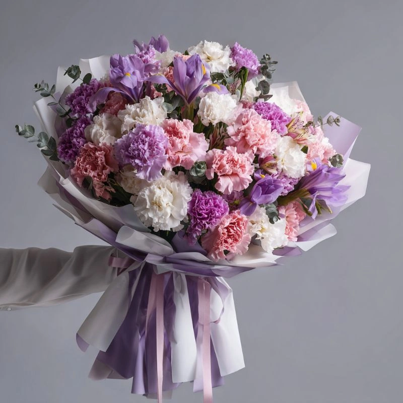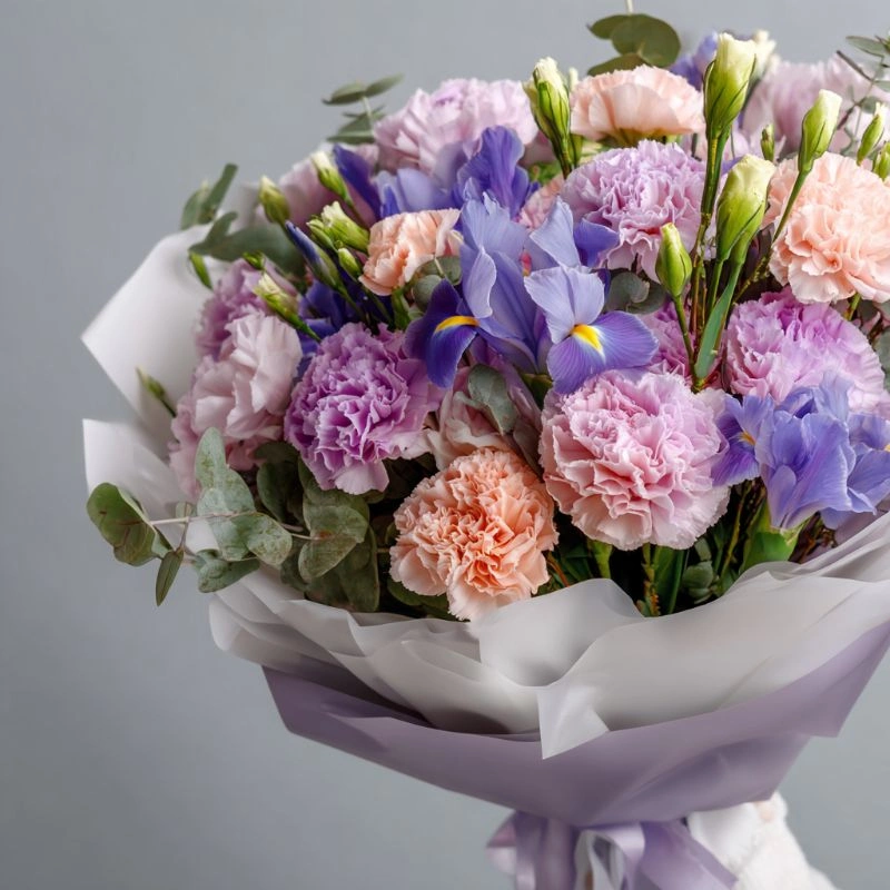 Идеально сбалансированное сочетание в букете, где нежные переливы цветов создают целостный образ. Каждый оттенок мягко подчеркивает красоту композиции, образуя живописное сочетание.