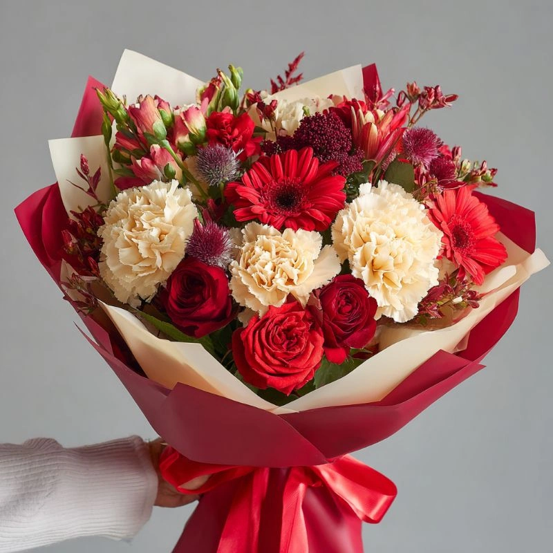 ГлавнаяКаталогБукетыБукет с гвоздиками «Теплые объятия»