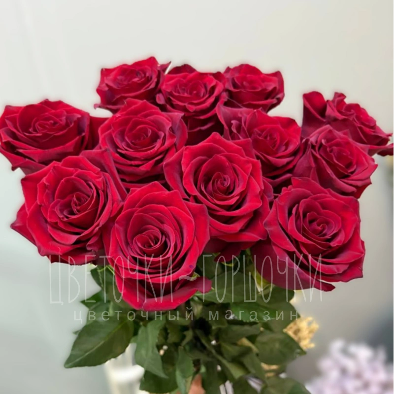 15 красных российских роз 60 см