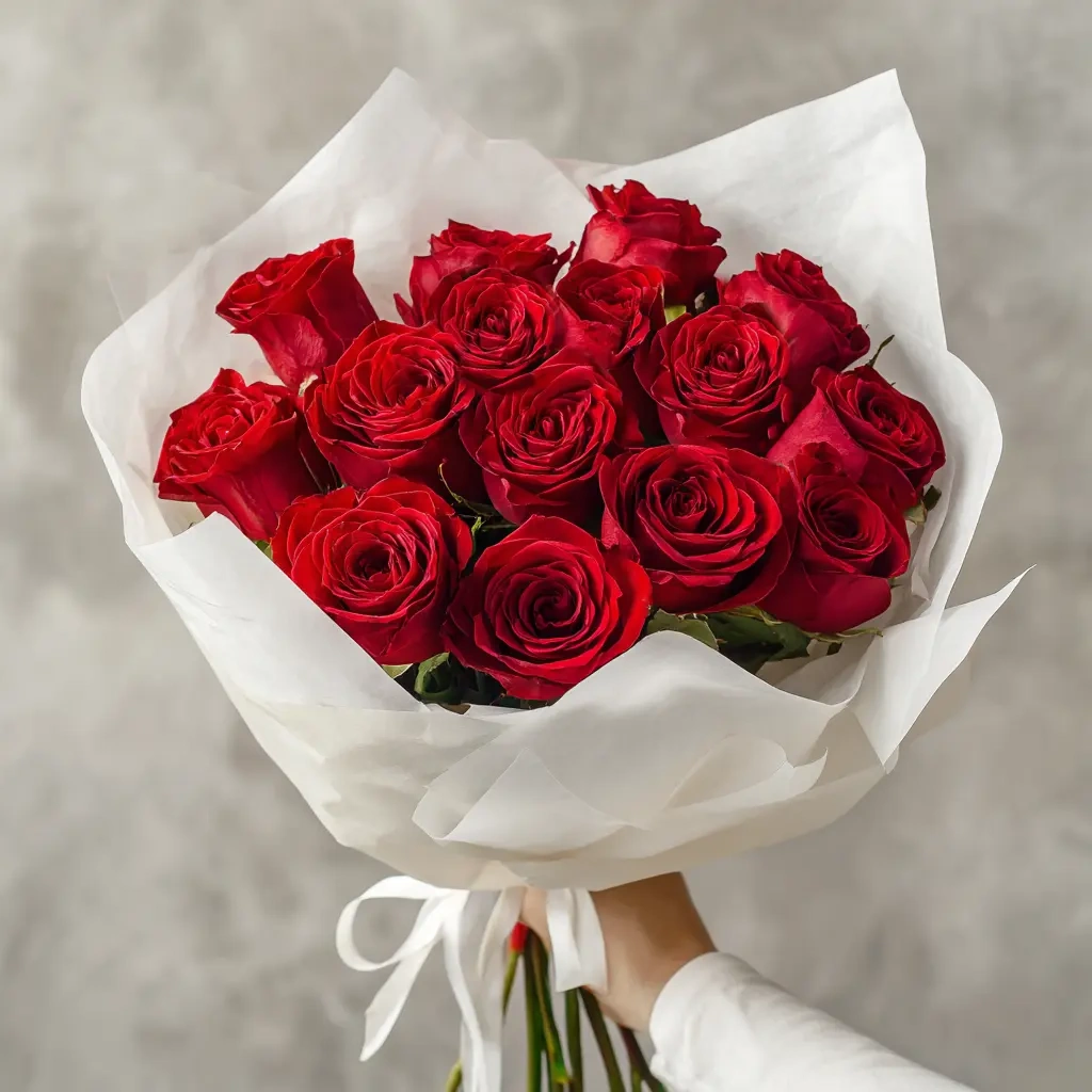 Классический букет из 15 красных российских роз с длинными стеблями — выразительный и эффектный способ признаться в любви. Отличный выбор для торжественных случаев и романтических жестов.