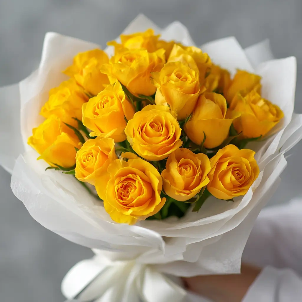 Яркий, солнечный букет из 15 жёлтых роз длиной 40 см. Символ радости, дружбы и позитива. Кенийские розы в этом исполнении станут отличным подарком коллеге, подруге или близкому человеку.