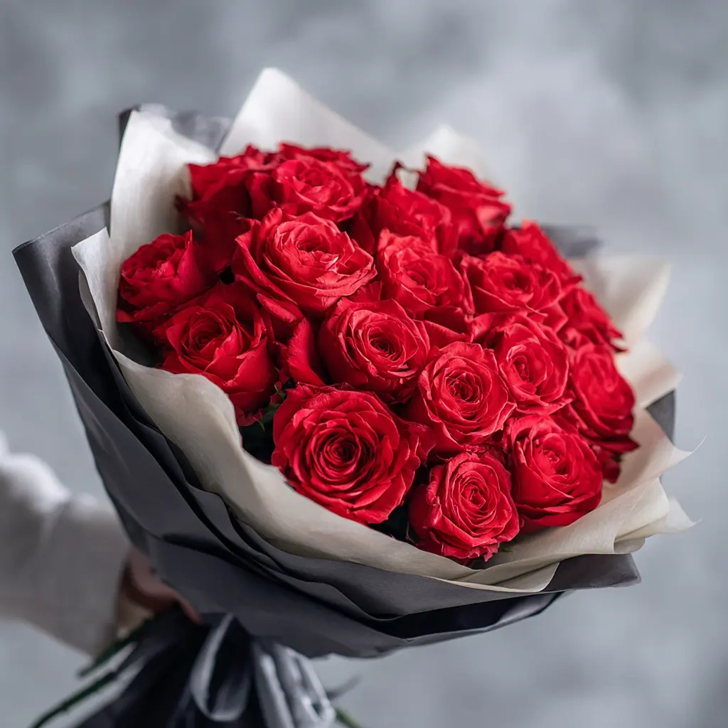 Композиция, вдохновлённая моментом, когда солнце касается горизонта. Тёплый оттенок красных роз создает атмосферу уюта и романтики. Подходит для признаний и вдохновения.